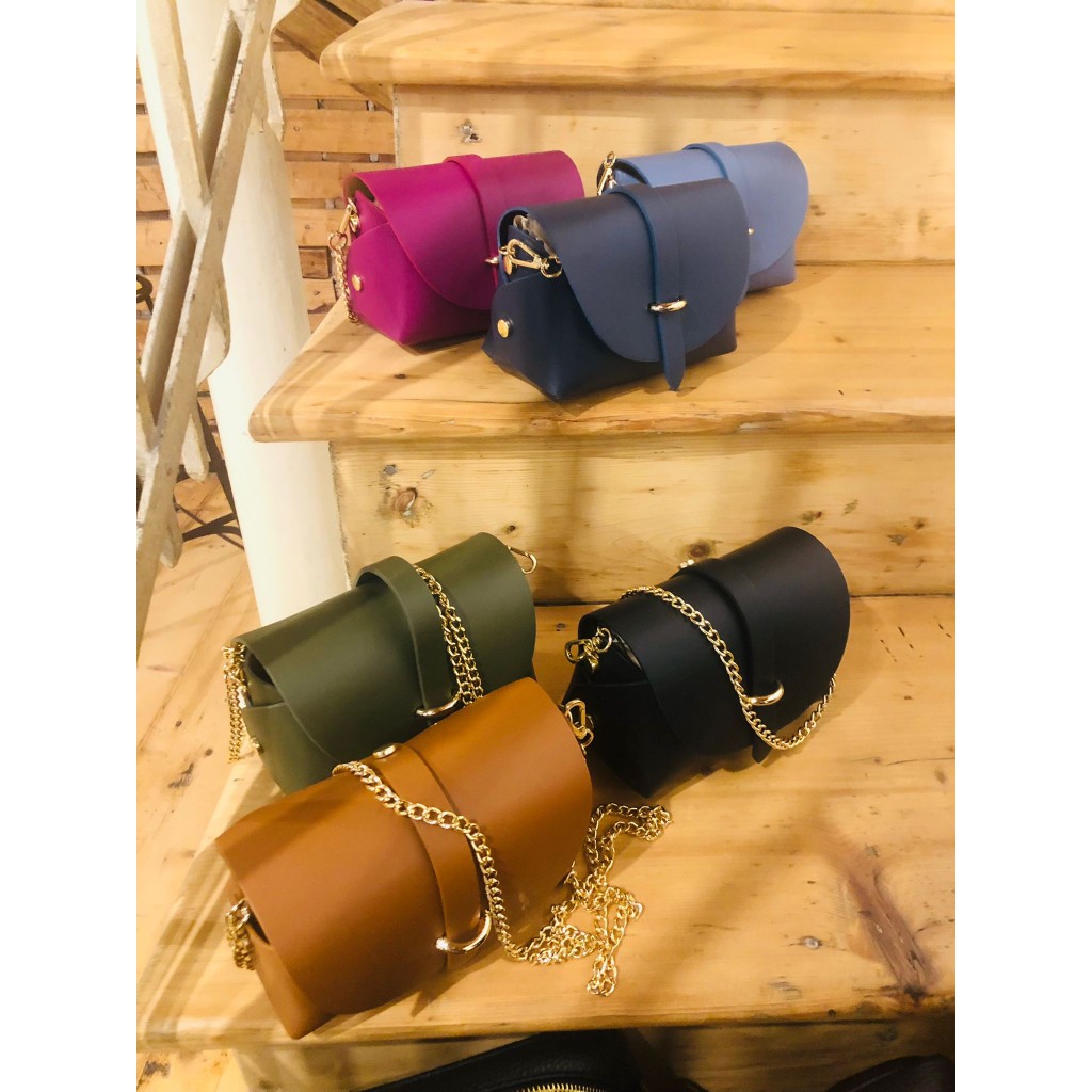 BORSETTA PELLE TRACOLLA CATENA ORO.