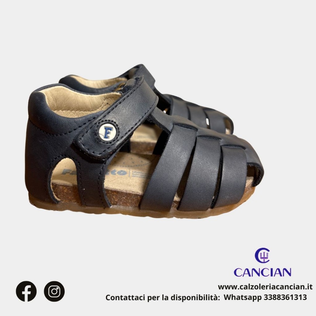 SANDALO PRIMO PASSO, STRAPPO, TALLONE E PUNTA CHIUSA, PELLE BLU.
