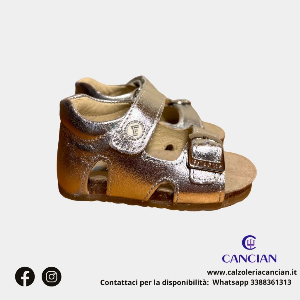 SANDALO PRIMO PASSO, STRAPPO, TALLONE CHIUSO, PELLE ARGENTO.