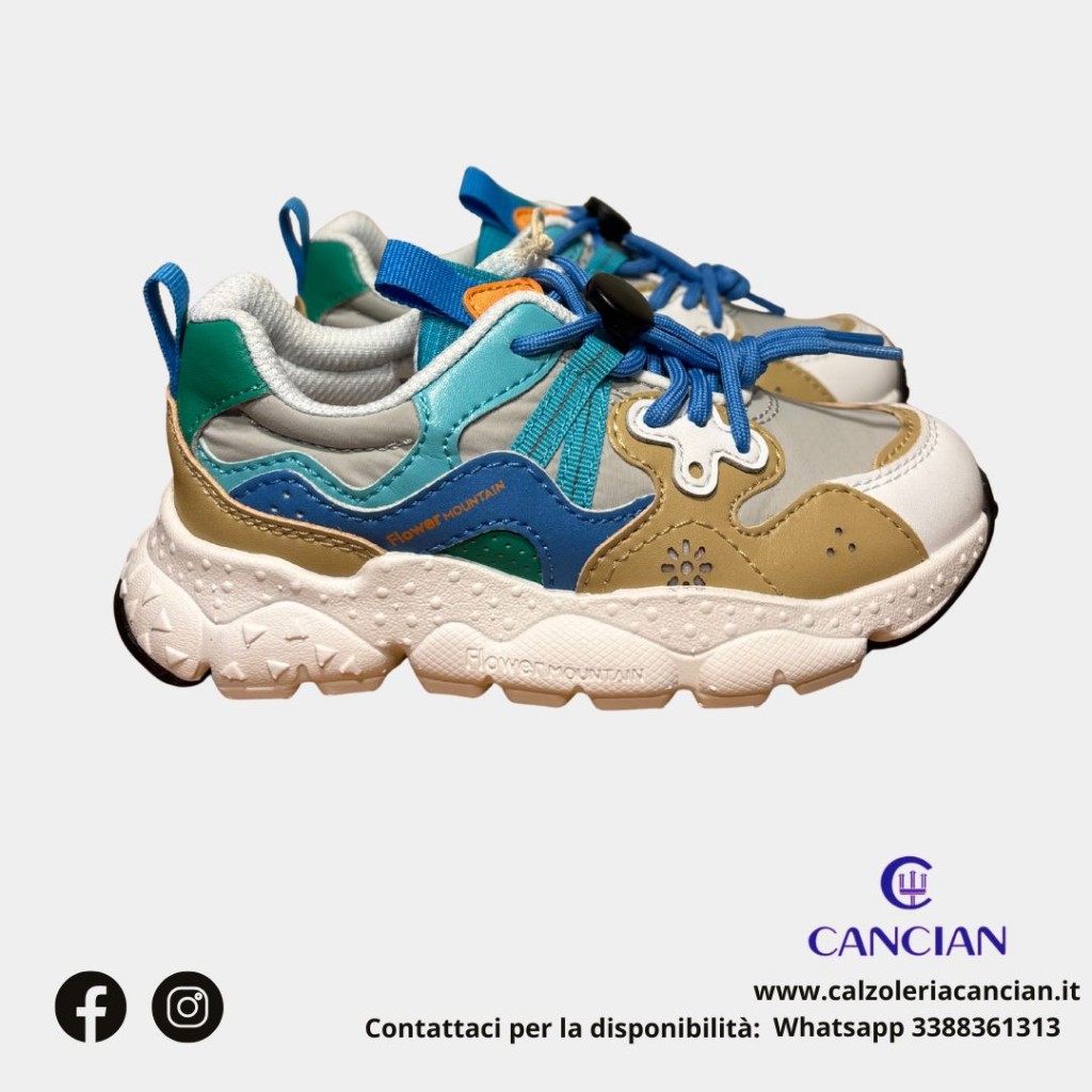 SPORTIVA FLOWER MOUNTAIN, LACCIO CON BOTTONE VEGAN BIANCO BEIGE AZZURRO.