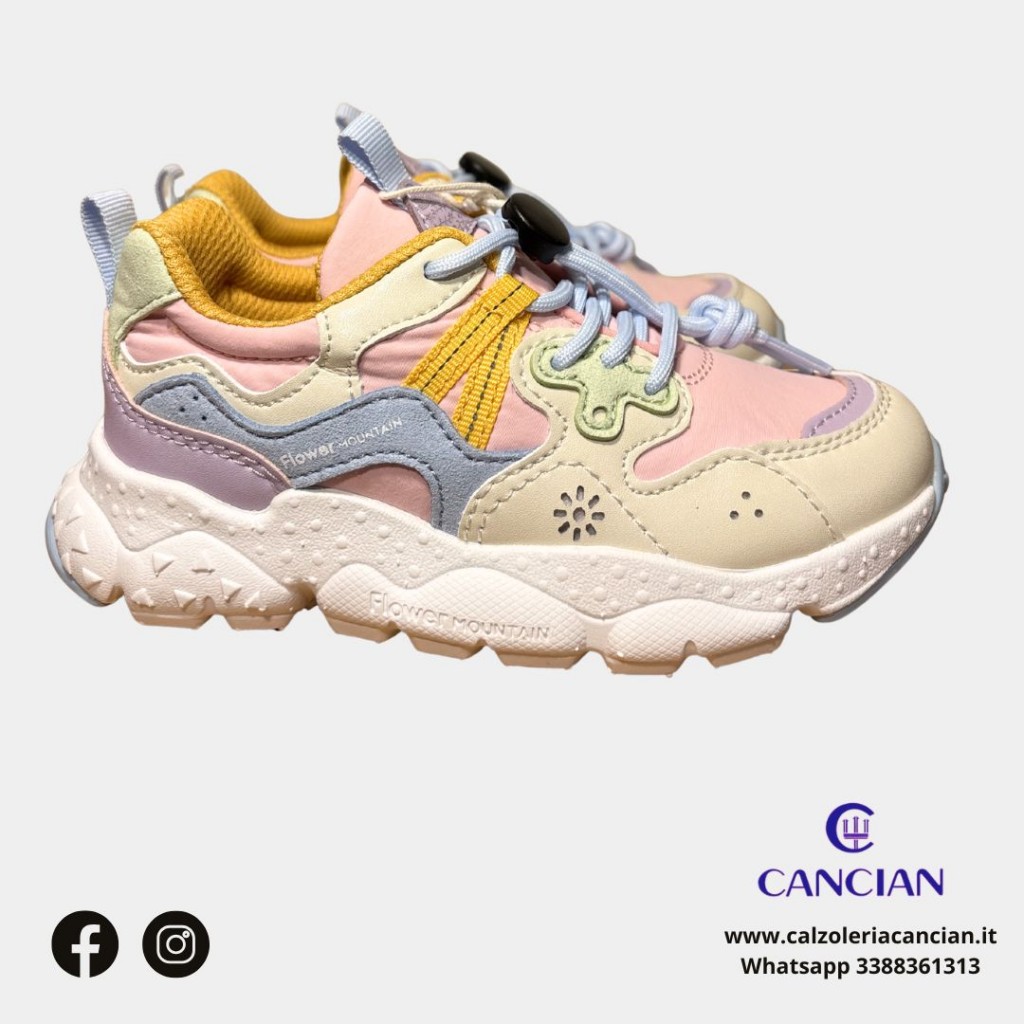 SPORTIVA FLOWER MOUNTAIN, LACCIO CON BOTTONE VEGAN ROSA BEIGE AZZURRO.