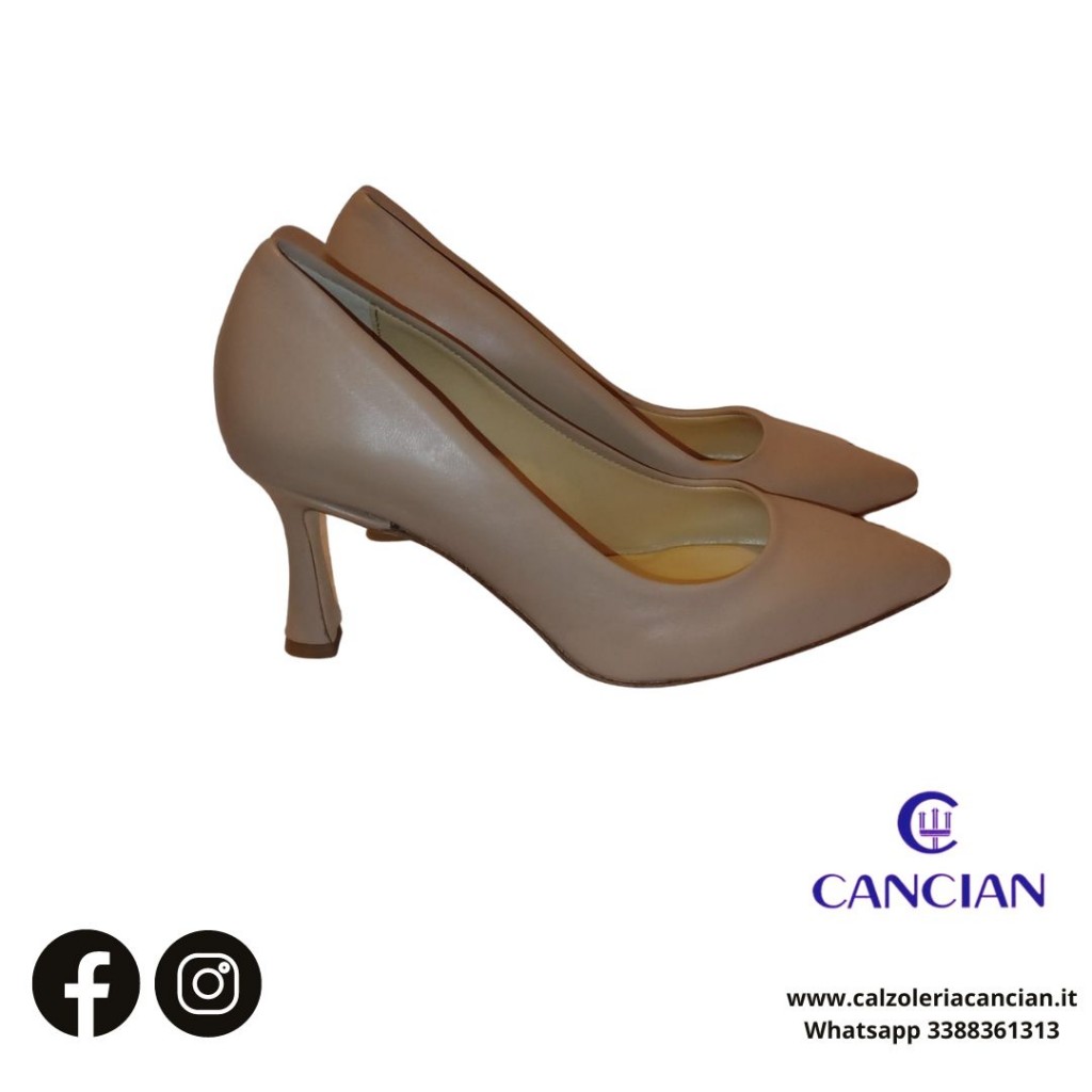 Decoltè pelle. Tacco 7,5 cm Fondo cuoio. Lacorazione a sacchetto.