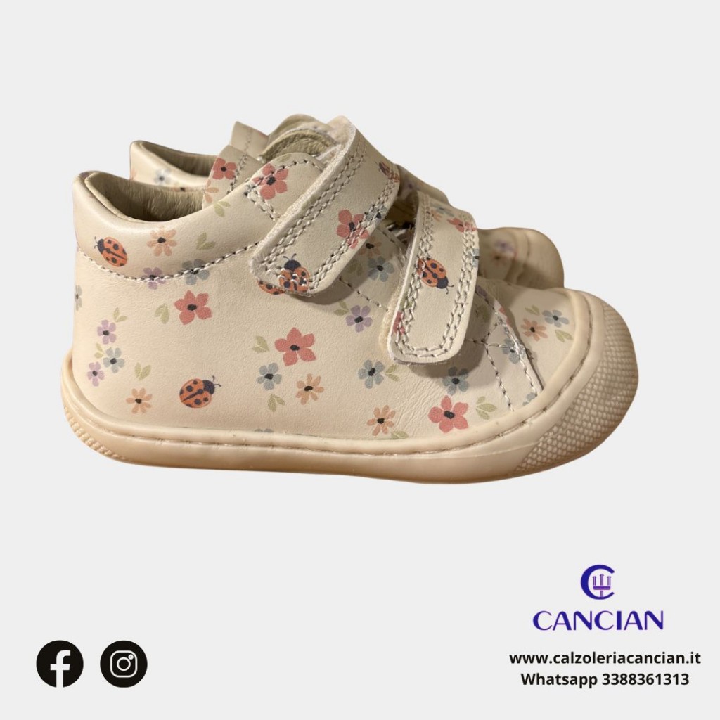 SCARPA STRAPPI PELLE MORBIDA FIORI E COCCINELLE COCOON..