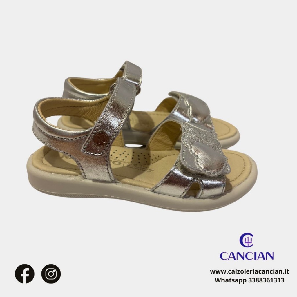 SANDALO STRAPPO PELLE LAMINATA CUORI FONDO GOMMA.