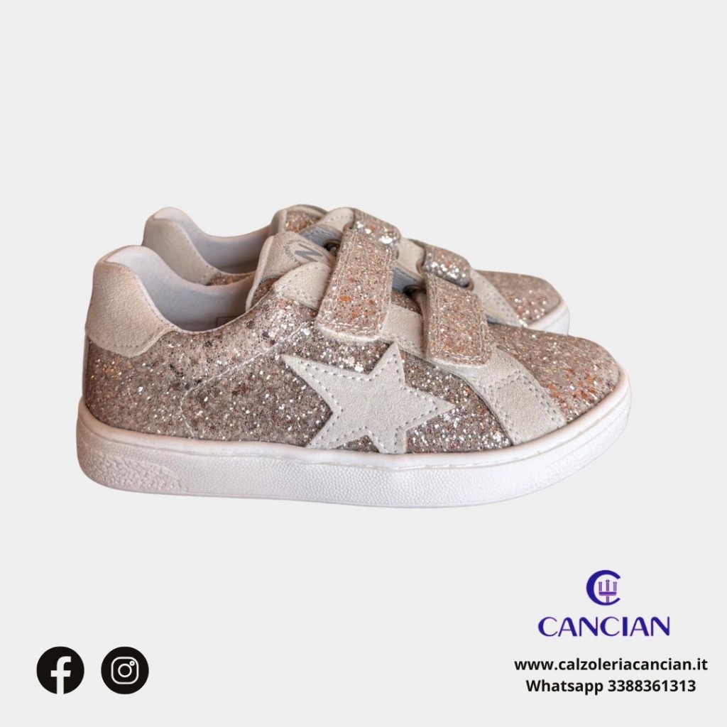 SPORTIVA PELLE GLITTER STRAPPO INSERTI CAMOSCIO BEIGE.