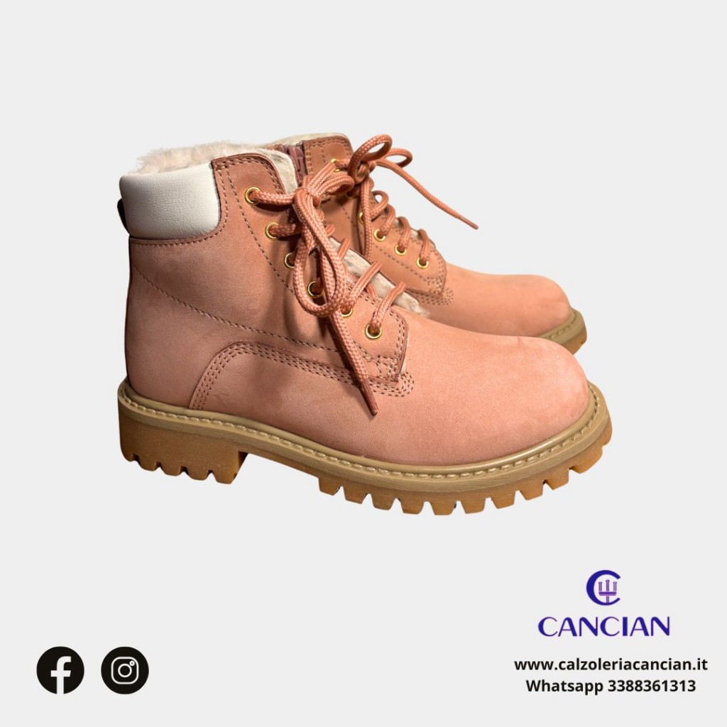 SCARPONCINO LACCIO E CERNIERA FONDO GOMMA, PELO INTERNO NABUK.