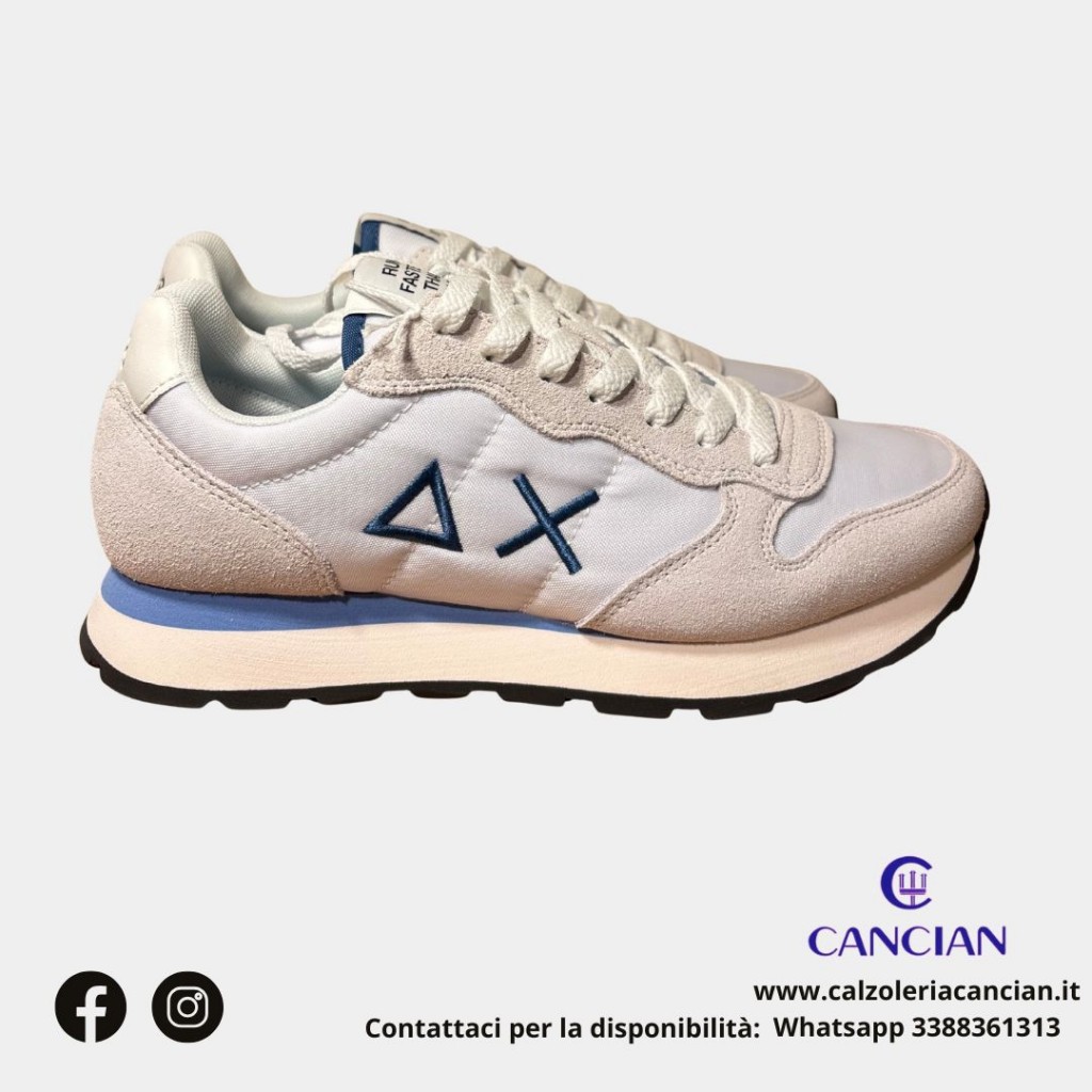 SPORTIVA TESSUTO E CAMOSCIO TALLONE BIANCO PROFILO E LOGO AZZURRO LACCIO.
