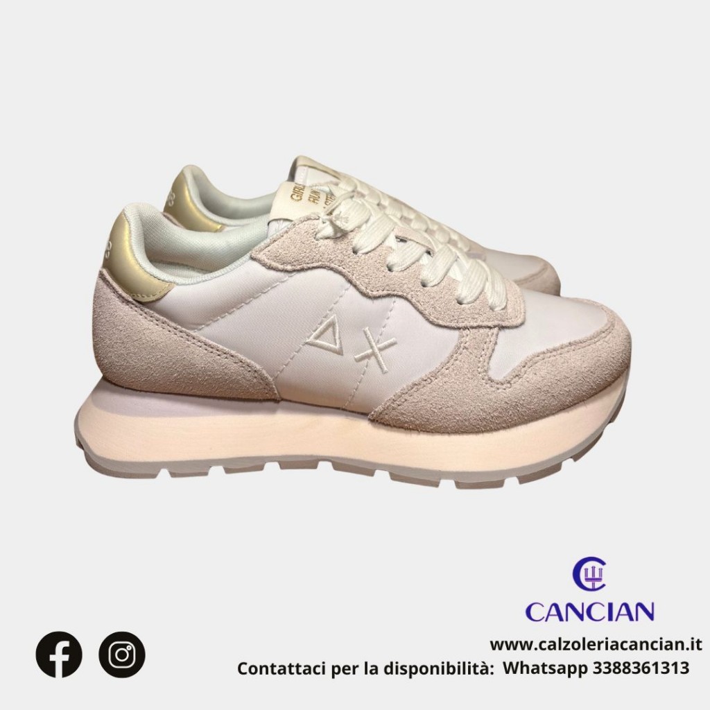 SPORTIVA TESSUTO E CAMOSCIO LOGO BIANCO E TALLONE ORO ZEPPA INTERNA.