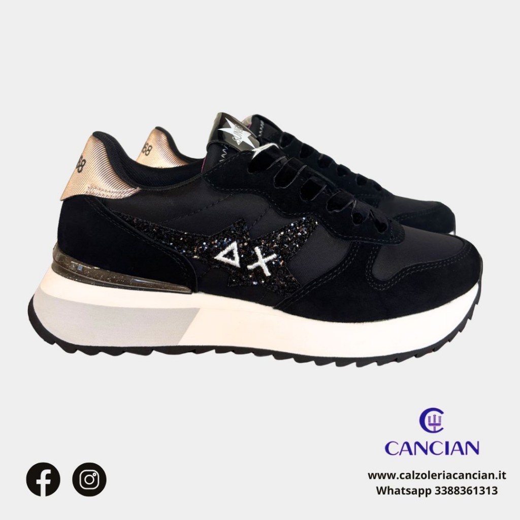SPORTIVA TESSUTO E CAMOSCIO LOGO GLITTER NERO TALLONE ARGENTO ZEPPA.
